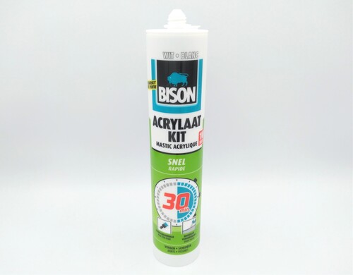 Bison is hét toonaangevende lijm- en kitmerk in de Benelux en ver daarbuiten een belangrijke fabrikant. U vindt bij ons dan ook een zeer uitgebreid assortiment Bison producten waaronder verschillende soorten acrylaatkit. Zo verkopen wij overschilderbare schilderskit, speciale sneldrogende acrylaatkit, structuurkit voor pleister- en stucwerk en regenvaste acrylaatkit voor buiten. Bij vragen kunnen wij u uiteraard altijd vrijblijvend adviseren.