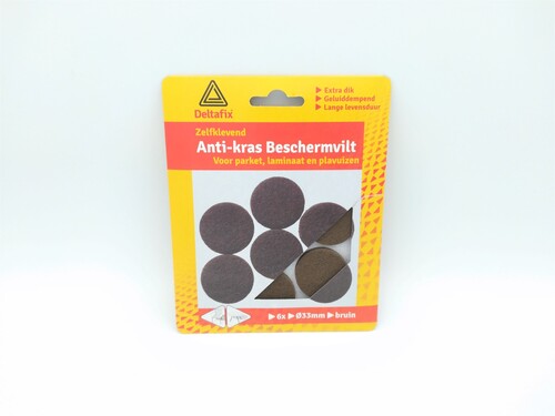 Om uw vloer te beschermen tegen krassen en andere beschadigingen kunt u vilt onder de poten van uw stoelen of andere meubels plaatsen. Wij verkopen antikrasviltjes in verschillende maten en kleuren, zowel rond als vierkant. Ook kunt u bij ons grotere, vierkante vellen vilt aanschaffen om deze zelf op maat te knippen en zo krassen en putten in uw vloer te voorkomen. Ook verkopen wij doppen om onder stoelpoten te bevestigen.