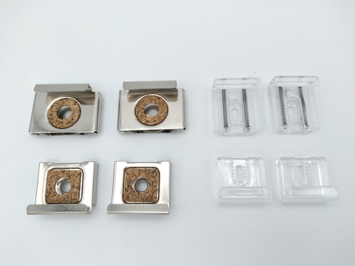 Spiegelklemmen worden gebruikt om een spiegelplaat zonder lijst of ophangmogelijkheden op te hangen. De spiegelklemmen zijn te koop in een set van twee verende klemmen voor de bovenzijde en twee vaste klemmen voor onderaan de spiegel. Deze blisters bevatten ook direct de benodigde schroeven en pluggen. Naast de standaard staalvernikkelde spiegelklemmen zijn er ook transparantkunststof spiegelklemmen. Wel zo handig voor in de douche want kunststof roest niet. Kom gerust even kijken, wij helpen u graag.