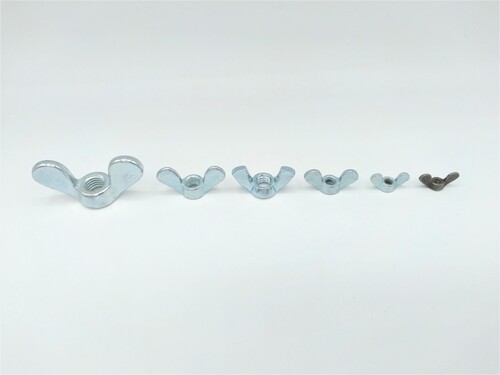 Een vleugelmoer is geschikt om zonder gereedschap aan te kunnen draaien. Een vleugelmoer is te verkrijgen in staal, messing of rvs. We hebben vleugelmoeren per stuk of in een pakje met een aantal erin. Een vleugelmoer is te verkrijgen in een luxe gegoten versie of een goedkope gestanste versie, dit kan behoorlijk schelen in de prijs. Het meest bekende gebruik van de vleugelmoer is misschien wel de borging van figuurzaagjes.