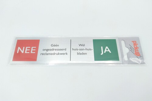 В нашия магазин ще намерите различни стикери и емайлирани или алуминиеви табели, които ще ви помогнат да получавате листовки и рекламни материали от врата на врата. Изберете от опции „не-не“, „да-не“, „да-да“ и „не-да“. Тези стикери и табели предотвратяват ненужните купчини поща и намаляват разхищението на хартия. С избор от тези табели и стикери от различни материали, гарантирано ще намерите нещо, което перфектно подхожда на обкова на вашата врата!