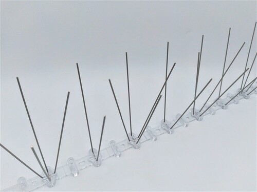 Щоб запобігти забрудненню вашого будинку, сараю, паркану, даху та/або водостоку голубами, ви можете встановити голубині шипи. Ця стрічка з нержавіючої сталі з вертикальними лезами запобігає голубам сісти або гніздитися в ураженій ділянці. Оскільки голуби випорожнюються лише тоді, коли вони нерухомі, голубине гніздо часто спричиняє сильне забруднення.